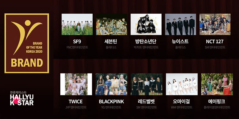 สภาผู้บริโภคแห่งเกาหลีได้ประกาศรายชื่อศิลปินไอดอล K-POP ที่เข้าชิงรางวัลในสาขาต่างๆของงาน 2020 Brand of the Year Awards ออกมาเป็นที่เรียบร้อยแล้ว ซึ่งการโหวตจะเปิดให้กลุ่มผู้บริโภคในเกาหลีลงคะแนนระหว่างวันที่ 27 กรกฎาคม ถึง 9 สิงหาคม