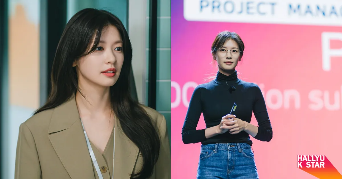 ในภาพนิ่งอีกภาพหนึ่ง แบซอกรยู กำลังนำเสนอสำคัญของบริษัทด้วยความมั่นใจและสง่าผ่าเผย ดวงตาของเธอเป็นประกายด้วยความเชื่อมั่นในตัวเอง