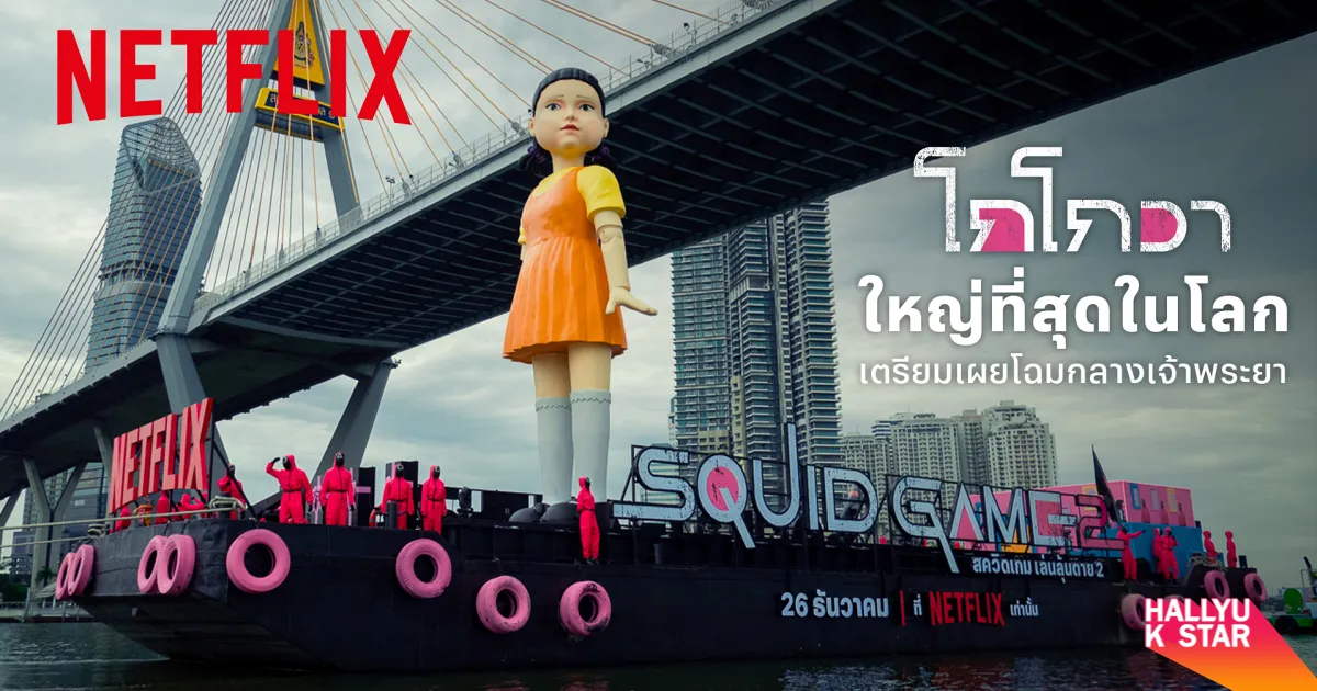 Netflix เตรียมสร้างปรากฏการณ์ครั้งใหม่ส่งท้ายปี ชวนแฟนชาวไทยร่วมสัมผัสความยิ่งใหญ่ต้อนรับ Squid Game: เล่นลุ้นตาย ซีซั่น 2 กับกิจกรรมสุดพิเศษที่ไม่เคยมีมาก่อน! พร้อมเปิดตัว “โกโกวา” หรือ ยองฮี ตุ๊กตาสังหารขนาดใหญ่ที่สุดในโลกที่จะล่องเรือโชว์ความอลังการผ่านแม่น้ำเจ้าพระยาในวันที่ 21-22 ธันวาคม 2567