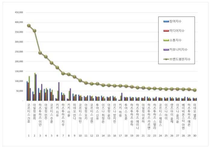 The Korean Business Research Institute วิเคราะห์ฐานข้อมูลของ สมาชิกจากวงรุกกี้ไอดอลกรุป ทั้งบอยกรุปและเกิร์ลกรุป โดยจัดอันดับชื่อเสียงของแบรนด์จากการประเมินทั้งเชิงบวกและเชิงลบ ซึ่งรวบรวมจากการมีส่วนร่วมของผู้บริโภคจากช่องทางต่างๆ ในเกาหลี การนำเสนอของสื่อ การสื่อสาร และการเข้าถึงบนสังคมออนไลน์