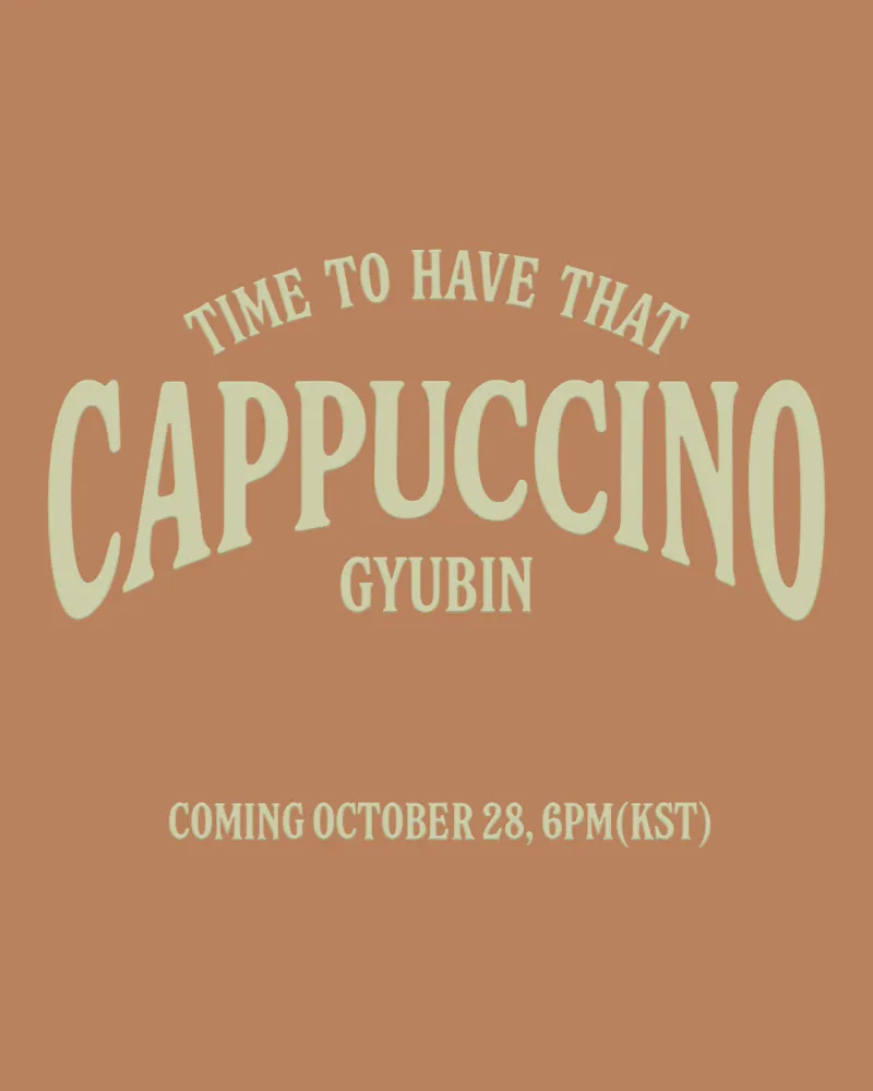 โปสเตอร์แรกเผยให้เห็นภาพของ GYUBIN ในลุคเหมือนขึ้นปกแมกกาซีน พร้อมถ้วยคาปูชิโน่ที่มีลาเต้อาร์ตลายหัวใจแตกครึ่งหนึ่ง สื่อถึงอารมณ์ของความรักที่มีทั้งความอบอุ่นและบาดลึก ส่วนโปสเตอร์ที่สองใช้โทนสีคาเฟ่เข้ม พร้อมข้อความ “TIME TO HAVE THAT CAPPUCCINO” ที่ยืนยันวันปล่อยผลงาน 28 ตุลาคมอย่างเป็นทางการ