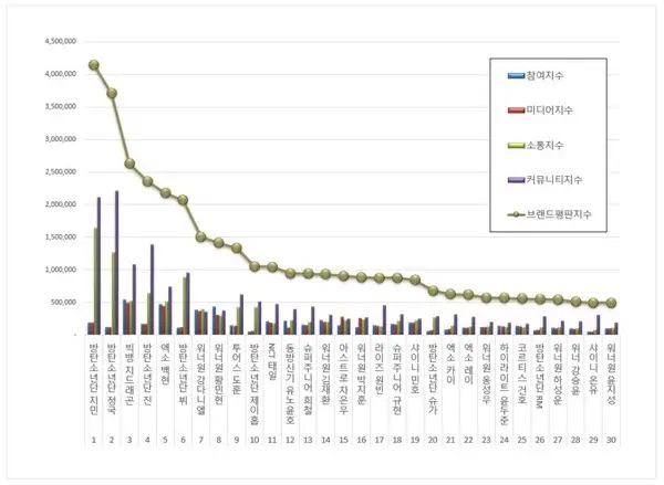 The Korean Business Research Institute วิเคราะห์ฐานข้อมูลของสมาชิกวงบอยกรุป และจัดอันดับชื่อเสียงของแบรนด์โดยการประเมินทั้งเชิงบวกและเชิงลบ ซึ่งรวบรวมจากการมีส่วนร่วมของผู้บริโภคจากช่องทางต่างๆ ในเกาหลี การนำเสนอของสื่อ การสื่อสารและการเข้าถึงบนสังคมออนไลน์