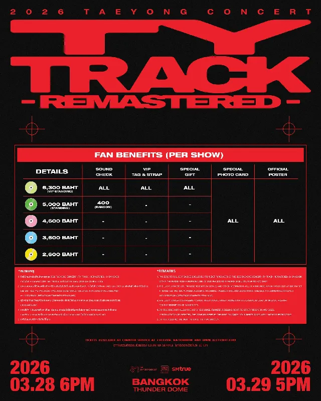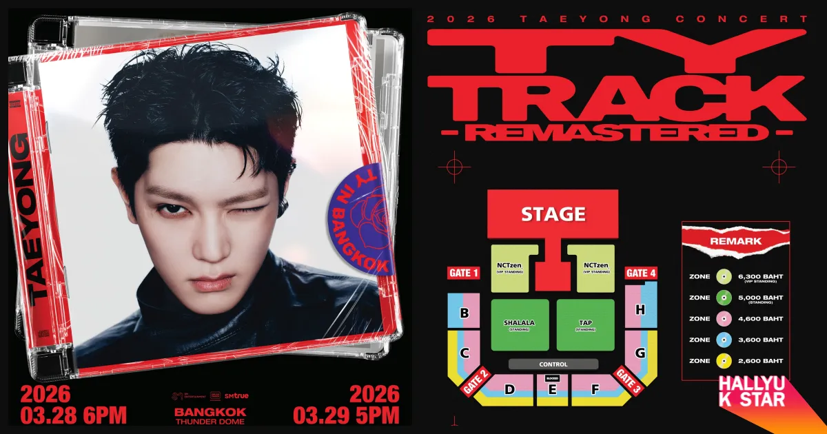 ‘2026 TAEYONG CONCERT <TY TRACK – REMASTERED> in BANGKOK’ คือการกลับมาของศิลปินที่พร้อมพาผู้ชมเดินทางไปกับโลกดนตรีของเขาอย่างเต็มรูปแบบ แฟนชาวไทยเตรียมพบประสบการณ์เวทีเดี่ยวที่เข้มข้น ครบถ้วน และทรงพลัง พร้อมติดตามรายละเอียดเพิ่มเติมได้ทางช่องทางโซเชียลของ SM True