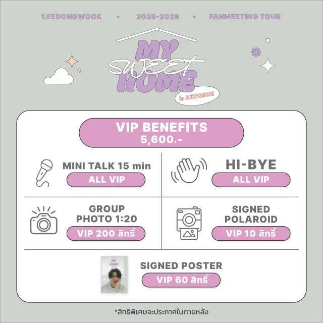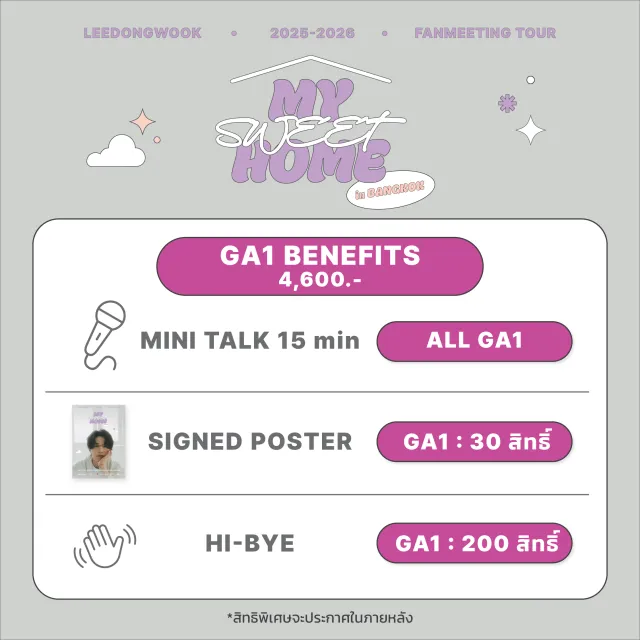 คอนเซปต์ “My Sweet Home” วางภาพให้แฟนมีตติ้งครั้งนี้เป็นบ้านที่อบอุ่นและเป็นกันเอง บรรยากาศจะเต็มไปด้วยบทสนทนา เสียงหัวเราะ และช่วงเวลาที่แฟน ๆ ได้มองเห็นทุกแววตา รอยยิ้ม และรายละเอียดบนเวทีอย่างชัดเจน