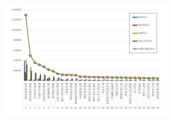 The Korean Business Research Institute วิเคราะห์ฐานข้อมูลของสมาชิกวงบอยกรุป และจัดอันดับชื่อเสียงของแบรนด์โดยการประเมินทั้งเชิงบวกและเชิงลบ ซึ่งรวบรวมจากการมีส่วนร่วมของผู้บริโภคจากช่องทางต่างๆ ในเกาหลี การนำเสนอของสื่อ การสื่อสารและการเข้าถึงบนสังคมออนไลน์